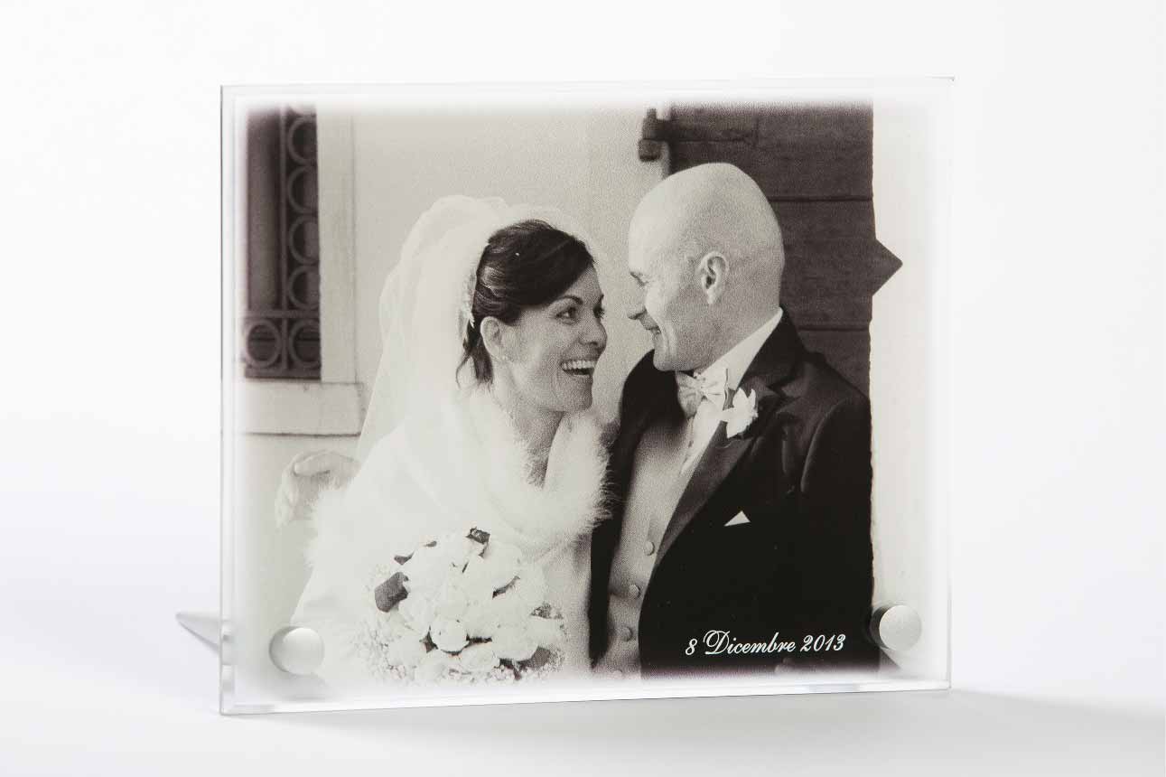 Raffinata ed elegante la stampa su plexiglass trasparente conferisce alle vostre foto un aspetto nuovo e luminoso. Stampiamo sul retro della superficie la foto, mentre sul davanti possono essere aggiunti loghi e dediche. I pannellini sono rifiniti con bordi bisellati lucidi e sostegni in alluminio. Tutte le dimensioni degli espositori posso essere adattate in base alle vostre esigenze.